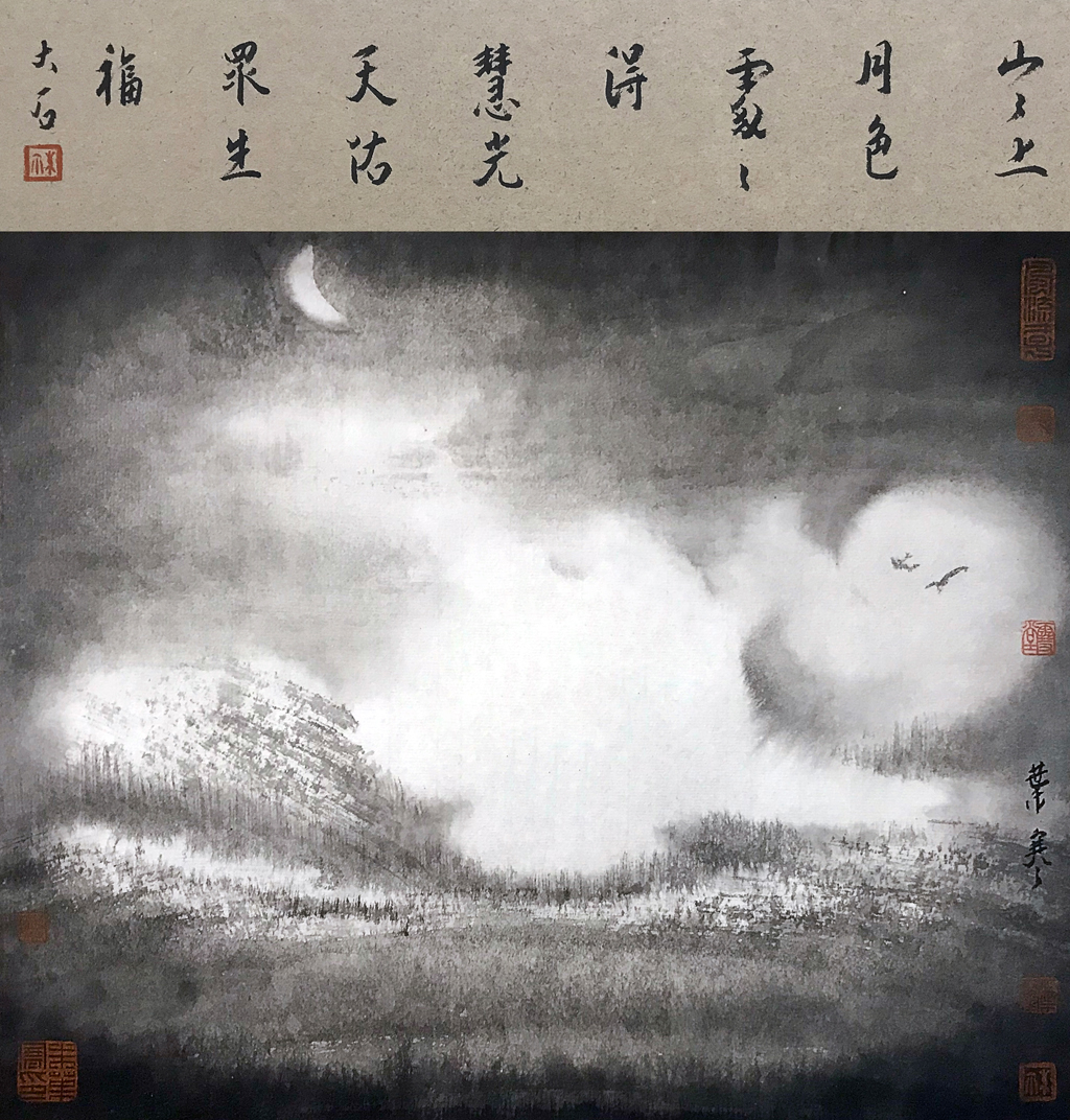 山山上月色,处处得慧光,天佑众生福。