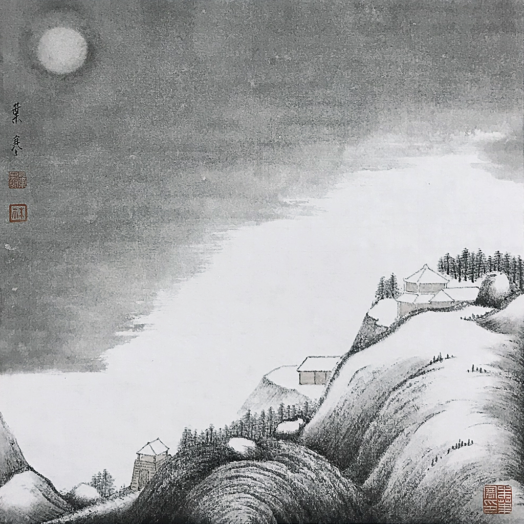 静谧的雪夜,天地混沌,月色迷蒙,令人如入禅境。